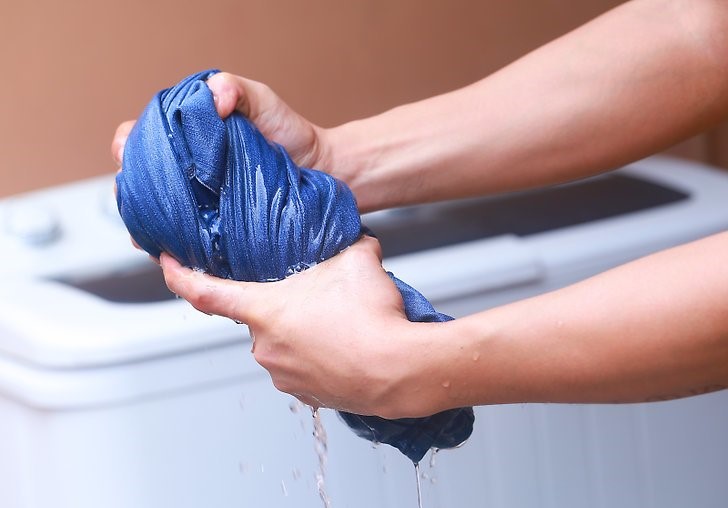 Plaunant rankomis, kaip pagalbinę priemonę galite naudoti šepetėlį. Užtepkite ant jo muilo (miltelių) ir atsargiai nuvalykite visą gaminio paviršių, ypatingą dėmesį skirdami naujai prisiūtai apačiai. Griežtai draudžiama daiktą išgręžti. Džiūvant vanduo turėtų nutekėti pats.