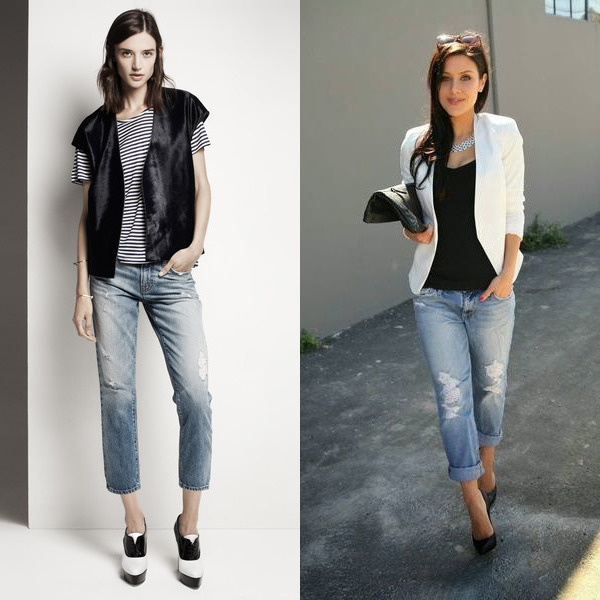 Pastaraisiais sezonais populiarūs „boyfriend“ džinsai gali būti papildyti įbrėžimais ir skylėmis. Tai suteikia modeliui dar daugiau laisvės.