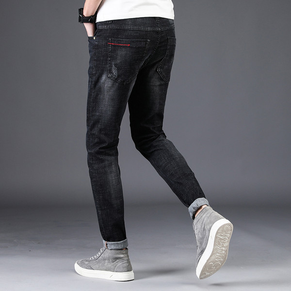 - Nutrinti/plyšę džinsai – šis stilius jau kelis sezonus iš eilės nepalieka mados kolekcijų. Renkantis nudėvėtus juodus vyriškus džinsus, verta atkreipti dėmesį į dekorą: spalvų perėjimą nuo juodos iki pilkos, iškirptes, kniedes, kontrastingo (raudono, balto, smėlio) atspalvio lopinėlius. Dizainerių vaizduotė su kiekvienu sezonu darosi vis ryškesnė, jie niekada nepavargsta stebinti madų mylėtojų naujomis idėjomis. Verta paminėti, kad, kaip ir žemo liemens vyriški džinsai, šis variantas tinka tik kasdieniam gyvenimui. Biuro aprangos kodui labiau tinka klasikinio kirpimo džinsai.