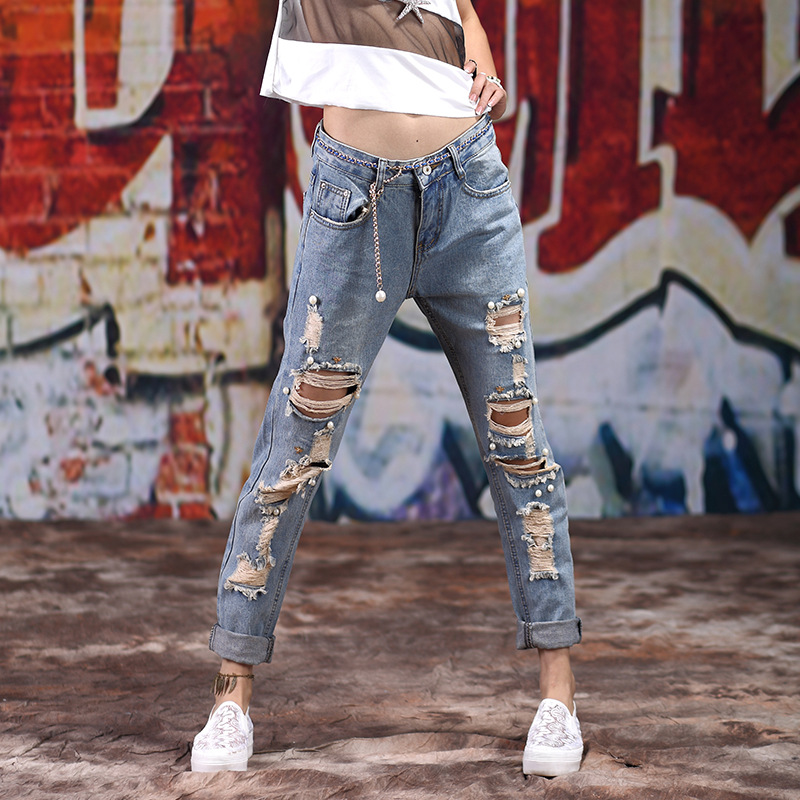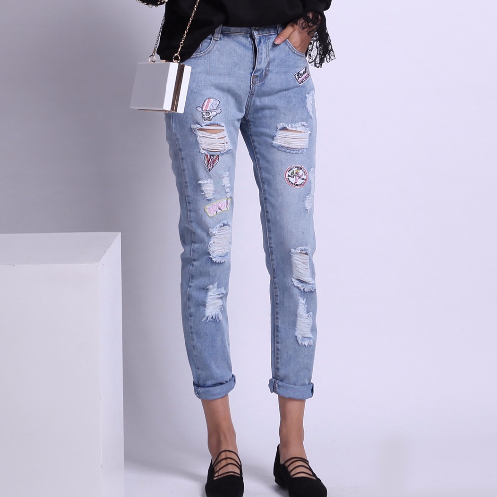 Aptemptos, plėšytos kelnės su itin madingais džinso efektais derinamos su stilingu švarku/švarku, paprasta palaidine ar marškiniais, sportiniu džemperiu, dideliu megztiniu, klasikiniais aukštakulniais bateliais, basutėmis su kulniuku. Paprastam įvaizdžiui puikiai tinka ryškūs papuošalai, labai kruopščiai parinktos delninės ir moteriški portfeliai prie aptemptų, plėšytų džinsų, madingos kuprinės ir rankinės, derančios prie batų stiliaus.