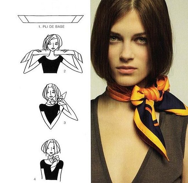 - Originali išvaizda yra įstrižai sulankstytas šalikas.