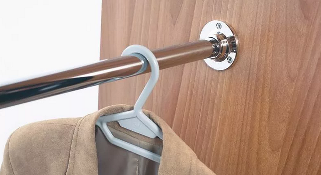 | Ovalas – labiausiai paplitęs pasirinkimas tarp vartotojų. Šis modelis tvirtinamas flanše, kuris tvirtinamas prie baldų lentos. Ovalus drabužių kabykla pasižymi padidintomis galimos apkrovos charakteristikomis, todėl ant jos galima dėti viršutinius drabužius – paltus, žiemines striukes, pūkines striukes. | Skersai – spintoje arba drabužinių sistemoje esantys skersai gaminio. Kai kurie spintų savininkai nepritaria šiam tipui, teigdami, kad jį nepatogu naudoti. Kita vertus, toks strypų išdėstymas leidžia sutaupyti vietos spintoje, atlaisvinant ją kitiems daiktams. | Ištraukiamas mikroliftas – naudojamas negiliose spintelėse, iki 50 cm gylio. Patogumas slypi statmename išdėstyme apačiai, kai viena iš modelio dalių juda į priekį, leisdama žmogui pasiimti reikiamą daiktą. Toks įtaisas tvirtinamas varžtais prie spintos sistemos lubų. |