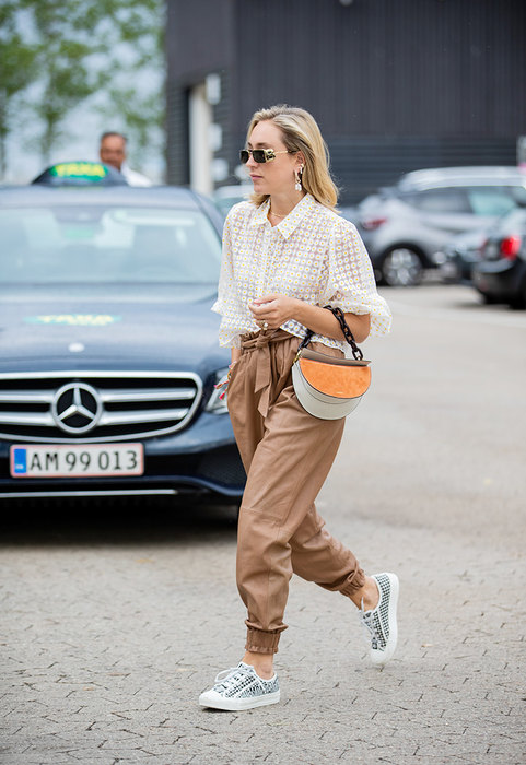 Jei norite derinti šio kirpimo kelnes su sportbačiais, pirmenybę reikėtų teikti laisvalaikio stiliaus modeliams. Klasikinės kelnės yra kaprizingos ir unikalios, todėl beveik neįmanoma jų sėkmingai derinti su sportbačiais ar užsegamais batais. Kalbant apie sportinio stiliaus kelnes, jos puikiai atrodys su futuristinio dizaino sportbačiais. Batų atspalvis gali būti bet koks – derantis prie kelnių arba veikiantis kaip ryškus akcentas. Puikus pasirinkimas būtų spalvoti sportbačiai arba bateliai su sudėtingu raštu.