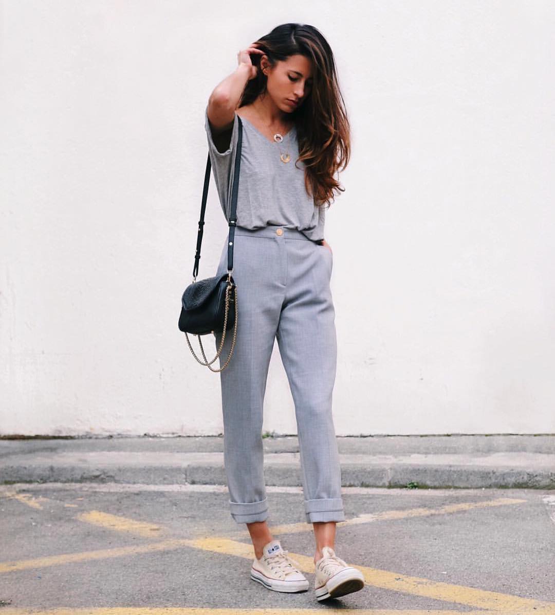 Būtina teisingai derinti dalykines kelnes su raukšlėmis ir sportbačiais. Svarbu atsižvelgti į tai, kad gautas įvaizdis netiks prie kiekvieno aprangos kodo. Jei toks derinys leidžiamas, klasikai geriau rinktis to paties tono batus, nes kontrastingas modelis atrodys netinkamas. Ši taisyklė taikoma ne tik moteriškai, bet ir vyriškai aprangai. Geriausias variantas būtų balti, juodi arba miltelinės spalvos modeliai. Pageidautina, kad batai būtų paprasto stiliaus, dekoras taip pat turėtų būti minimalus.
