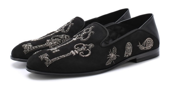 - „Alexander McQueen“ siūlo originalias šlepetes su sidabriniais arba spalvotais siuvinėjimais, pagamintas iš šilkinės zomšos. Nugarėlę papildo odiniai įdėklai.