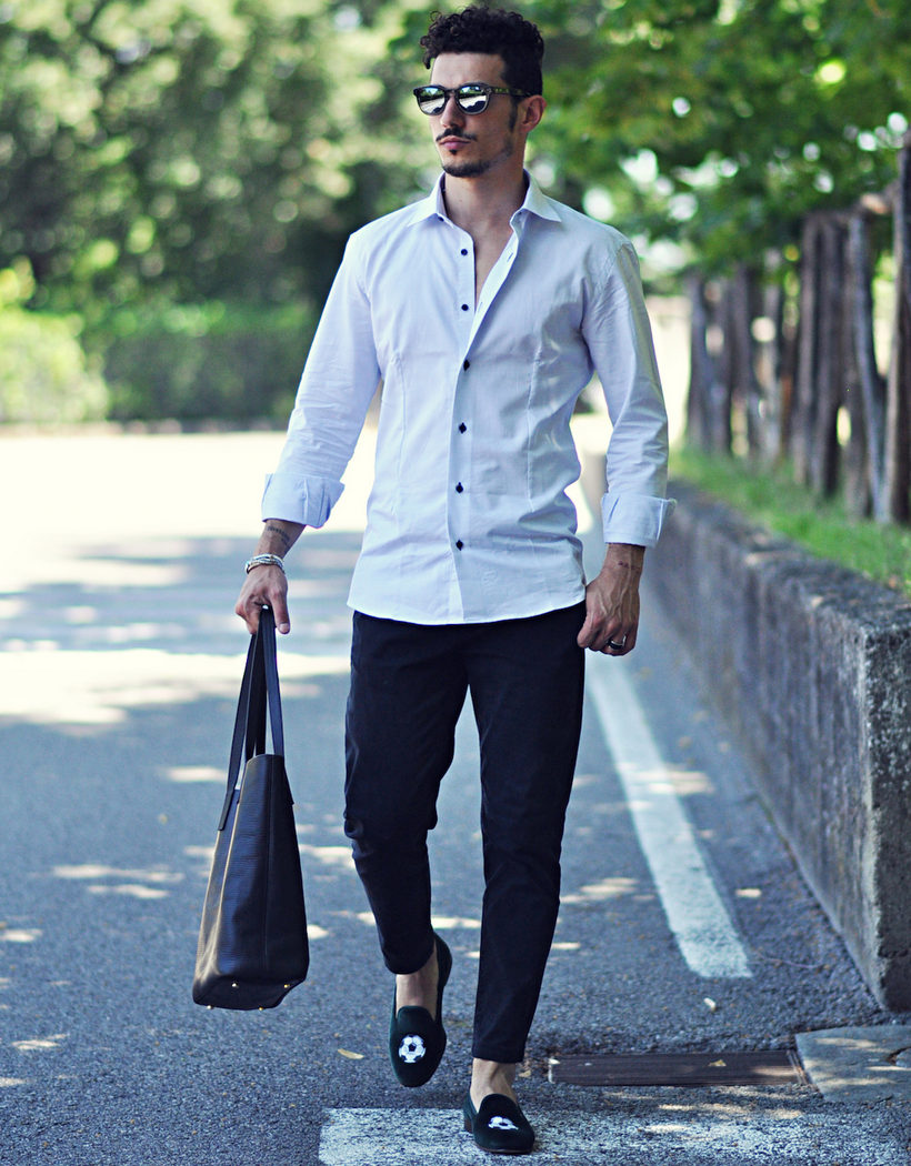 - Vyrai gali susikurti rokerio stiliaus aprangą su šlepetėmis. Tam reikės dėvėti trumpus džinsus, odinę baikerio striukę ir baltus marškinėlius. Pageidautina, kad batai būtų papuošti metalinėmis kniedėmis.