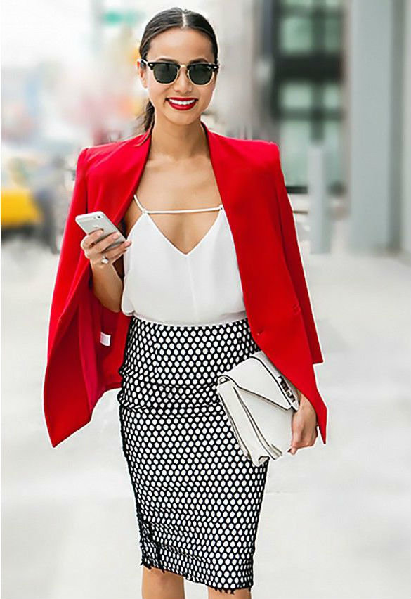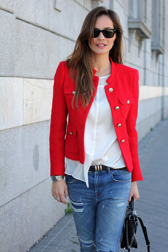 Norint sukurti elegantišką įvaizdį, reikia žinoti, ką dėvėti su raudonais švarkais. Galimų variantų skaičius yra begalinis. Gaminį galima dėvėti su įvairiais sijonais, kelnėmis, derinti su sportbačiais, bateliais, aulinukais, baleto bateliais ir pan. Įdomios idėjos: