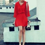 - Jei apranga pasiūta iš lengvai tekančių audinių, geriausias pasirinkimas yra basutės su kulnais ir raudona suknele.