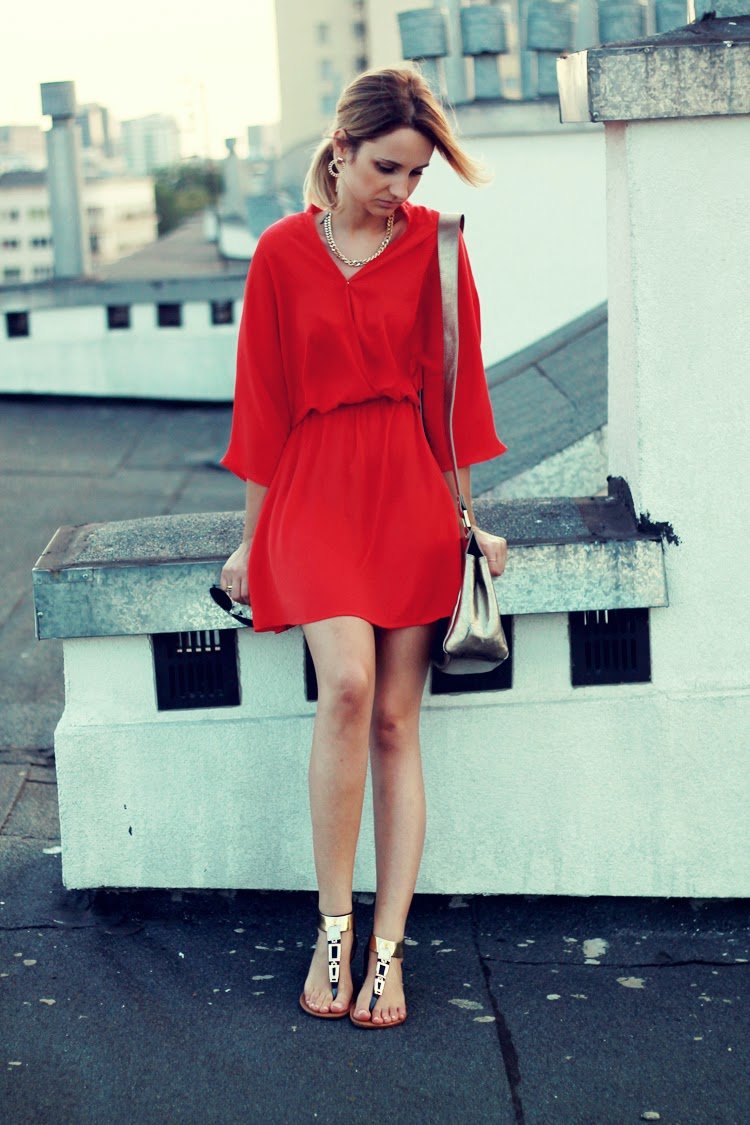 Klausimas, kokius aksesuarus derinti su raudona suknele, visada aktualus: stilingai atrodo sodraus atspalvio derinys su tvarkingais auskarais, auksine apyranke, sankaba ir juodais batais.