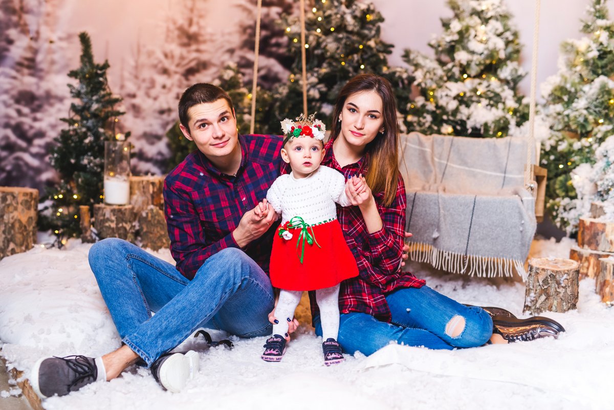 Reikia iš anksto išsiaiškinti, kokios dekoracijos bus studijoje.ir Naujųjų metų fotosesijai galite sukurti jaukų šeimos įvaizdį su šiais drabužiais: raudonais šalikais, megztiniais su elnių ar žiemos raštais, Naujųjų metų kepurėmis. Arba, priešingai, rinkitės šventinius elegantiškus rinkinius, kurie derės prie Naujųjų metų dekoro: papuoštą eglutę, židinį, šventinį stalą, girliandas. Pasirinkę pasakišką foto zonos versiją, apsivilkite prabangią baliaus suknelę, princo kostiumą, fėjos aprangą.