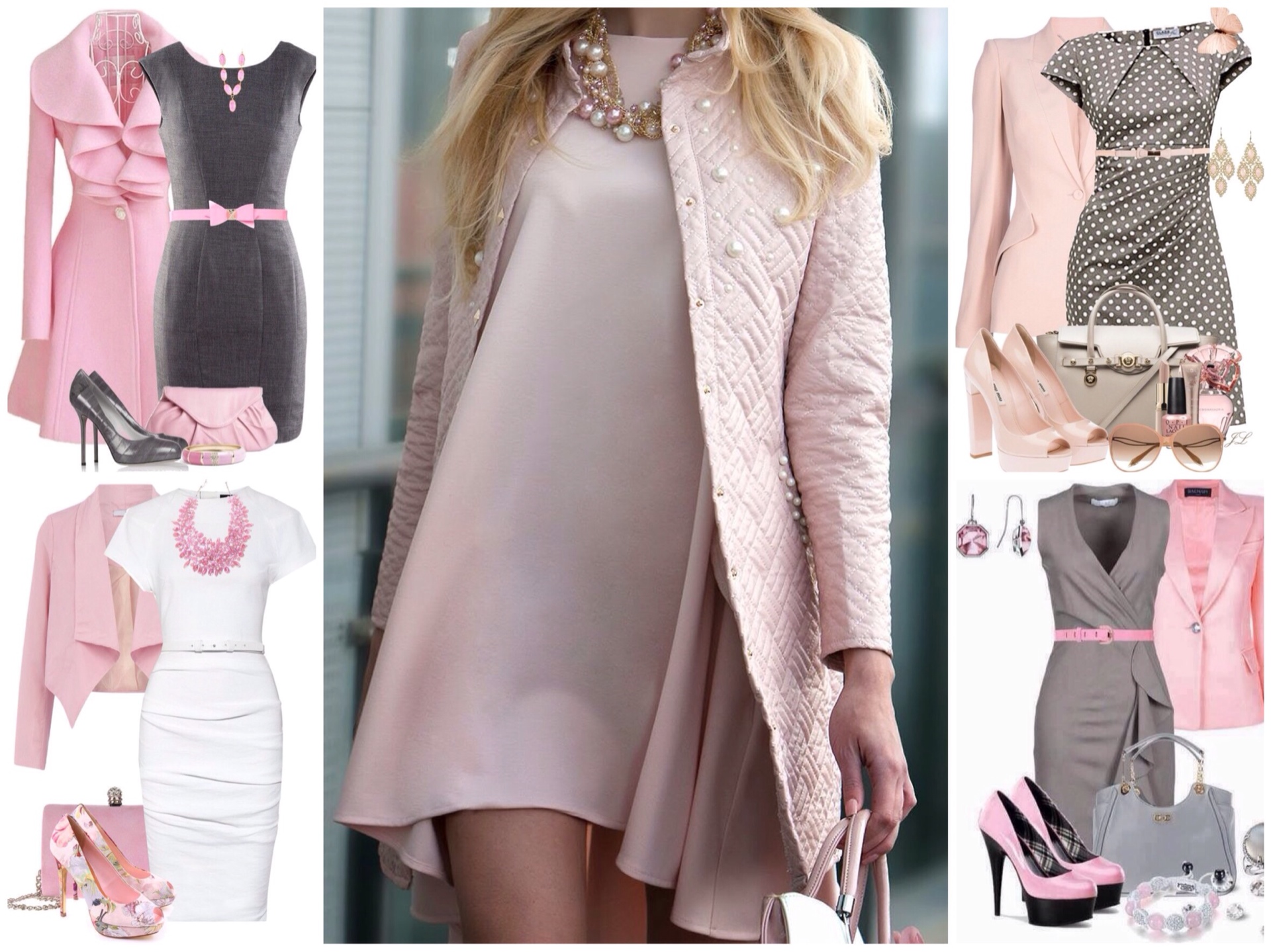 Dėl pudros atspalvių naudojimo drabužiuose dizaineriai sukuria daugybę įdomių įvaizdžių: nuo romantiškų iki drąsių. Aprašykime keletą populiariausių variantų: