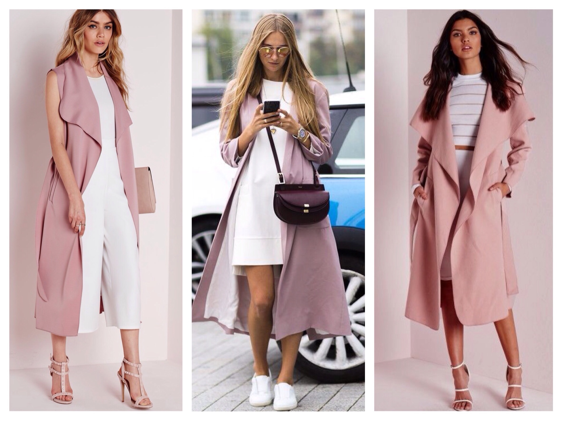 - Prie pudros spalvos tiks ryškus variantas iš tos pačios spalvų gamos. Pavyzdžiui, pudros rožinę galite papildyti ryškesne rožine spalva. Žemiau esančioje nuotraukoje šis derinys parodytas drabužiuose;