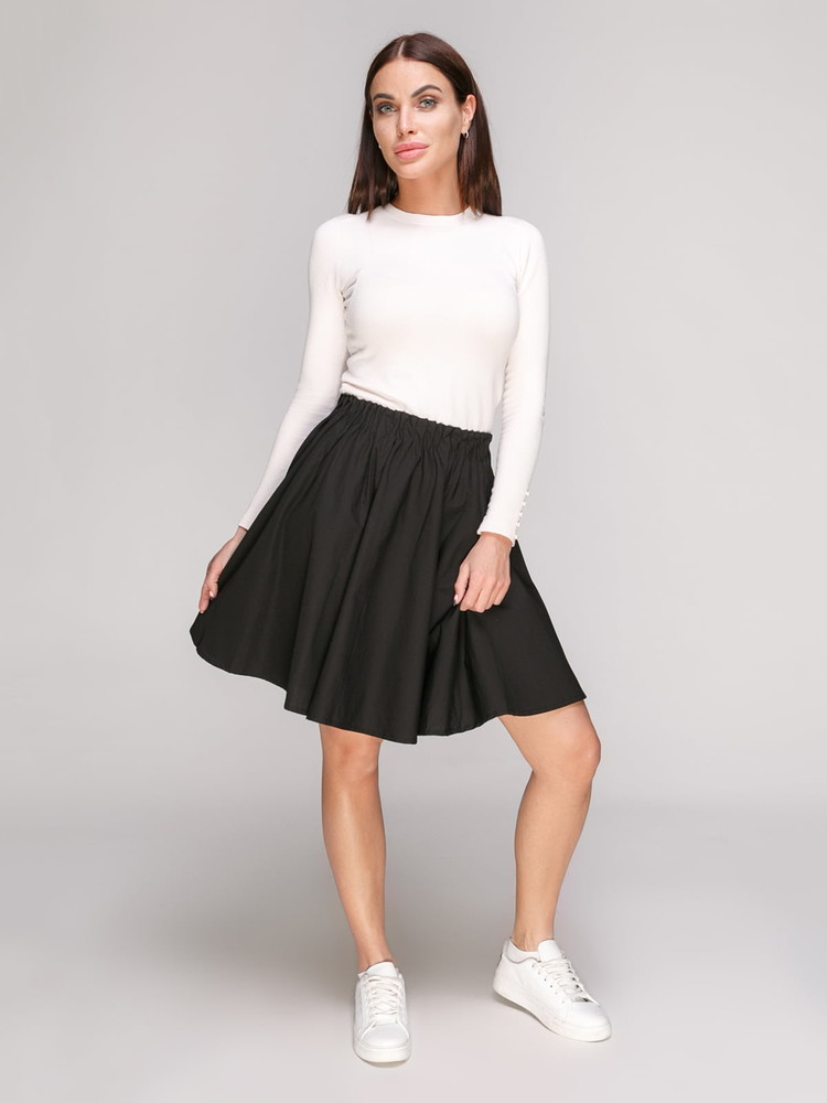 Ką dėvėti su juodais laisvalaikio sijonais: